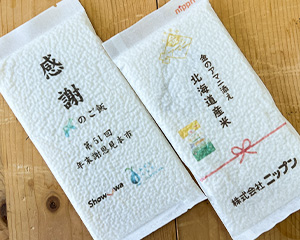 1合(150g)・2合(300g)の使いやすいサイズで、 パッケージ表面にはお好きなデザインを自由に印刷可能。