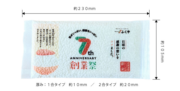 1合(150g)・2合(300g)の使いやすいサイズで、 パッケージ表面にはお好きなデザインを自由に印刷可能。